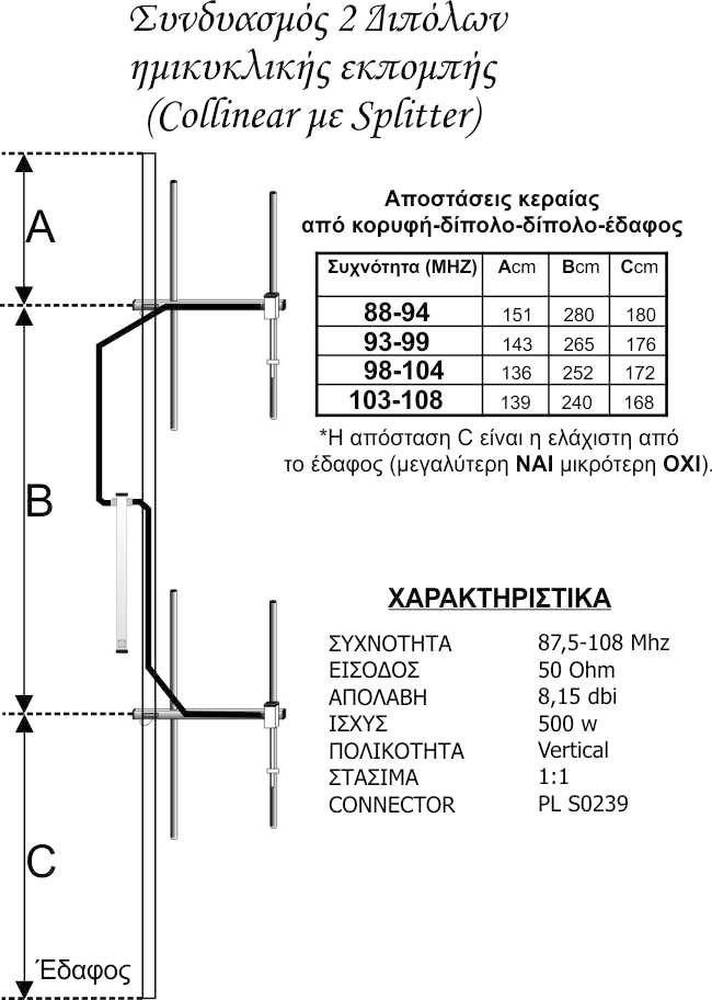 Συνδυασμός 2 διπόλων ημικυκλικής εκπομπής FM με Splitter
